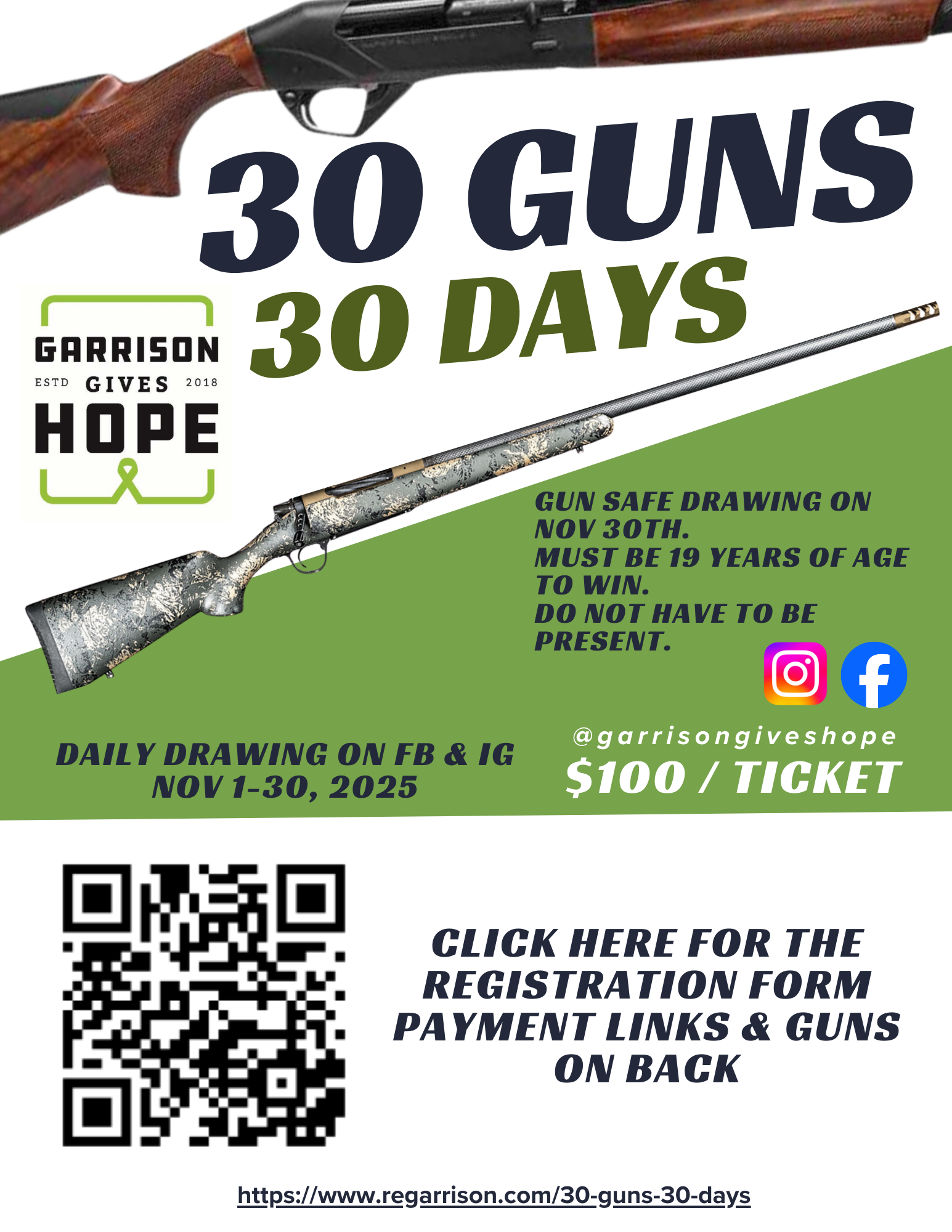 Click here to register for our 30 Guns 30 Days raffle